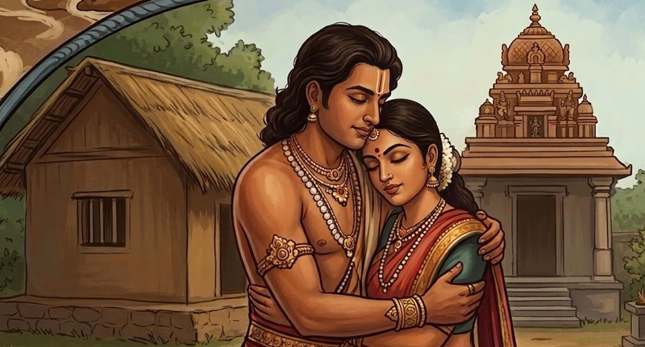 அதன்பிறகு உனக்கு என்ன பரிசுவேண்டும் எனக் கேட்ட கரிகாலனிடம், சோழ இளவரசி ஆதிமந்தியை பரிசாகக் கேட்டான் ஆட்டனத்தி. அவனது விருப்பத்தைக் கேட்டதும் வெட்கத்தில் தலை கவிழ்ந்து தனது சம்மதத்தைக் குறிப்பால் உணர்த்தினாள் ஆதிமந்தி.