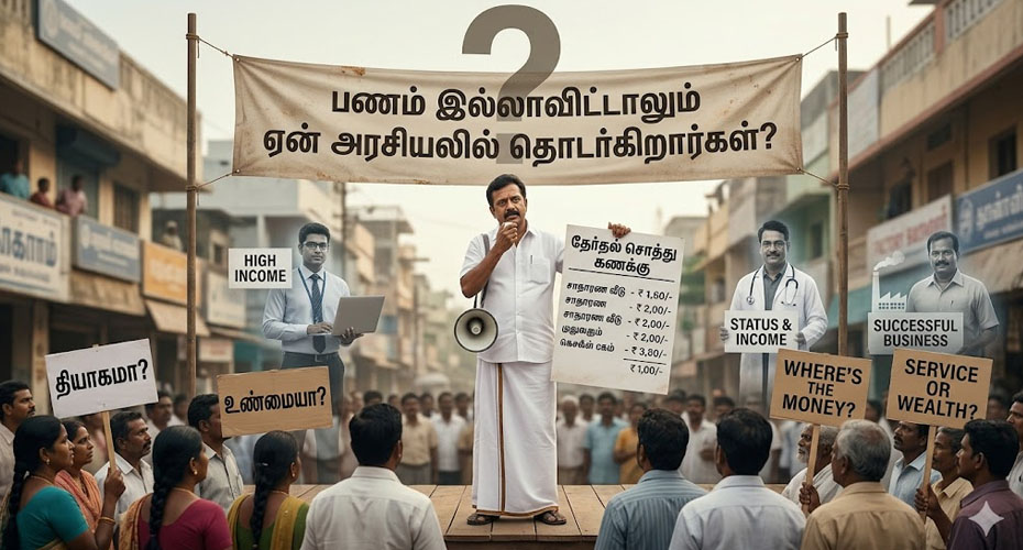 ஒரு சாதாரண ஐடி துறை வேலையில் சேர்ந்து பத்து, இருபது ஆண்டுகள் உழைக்கும் ஓர் இளைஞனே இதைவிட அதிகம் சொத்து சேர்த்துவிடுவார். சொந்தமாகத் தொழில் தொடங்கி சாதிக்கும் பலரும் மிக எளிதில் மேலே சொன்ன அரசியல் சாதனையாளர்களின் சொத்துகளைப் போலப் பல மடங்கு சம்பாதித்துவிடுகிறார்கள். ஆனால் நம் அரசியல்வாதிகளோ, மிடில் கிளாஸ் என்பதைப் பெரும்பாலும் தாண்டுவதில்லை.