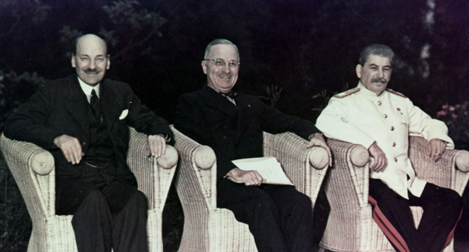 போட்ஸ்டாம் மாநாட்டுக்கு (Potsdam Conference) வின்ஸ்டன் சர்ச்சில் பிரிட்டன் பிரதமராக வந்தார். ஆனால் மாநாடு பாதியில் நடக்கும்போதே, எதிர்க்கட்சித் தலைவராகத் திரும்பினார். பிரிட்டன் மக்கள் எந்த ஒரு நன்றியுணர்வும் இல்லாமல் தேர்தலில் அவரைத் தோற்கடித்திருந்தார்கள். பதவியை இழந்தாலும், ஓர் உலகத் தலைவருக்கான தார்மீக அதிகாரம் அவரிடம் அப்படியே இருந்தது. 1946 மார்ச் 5ஆம் தேதி, மிசௌரியின் உள்ள வெஸ்ட்மின்ஸ்டர் கல்லூரியில் அவர் ஓர் உரை நிகழ்த்தினார். பல மாதங்களாக ராஜதந்திரிகள் தயங்கிய ஓர் உண்மையை அவர் போட்டு உடைத்தார்: ‘பால்டிக் கடலின் ஸ்டெட்டினில் இருந்து அட்ரியாட்டிக் கடலின் ட்ரைஸ்டே வரை, ஐரோப்பாவின் குறுக்கே ஓர் இரும்புத்திரை இறங்கியிருக்கிறது.’